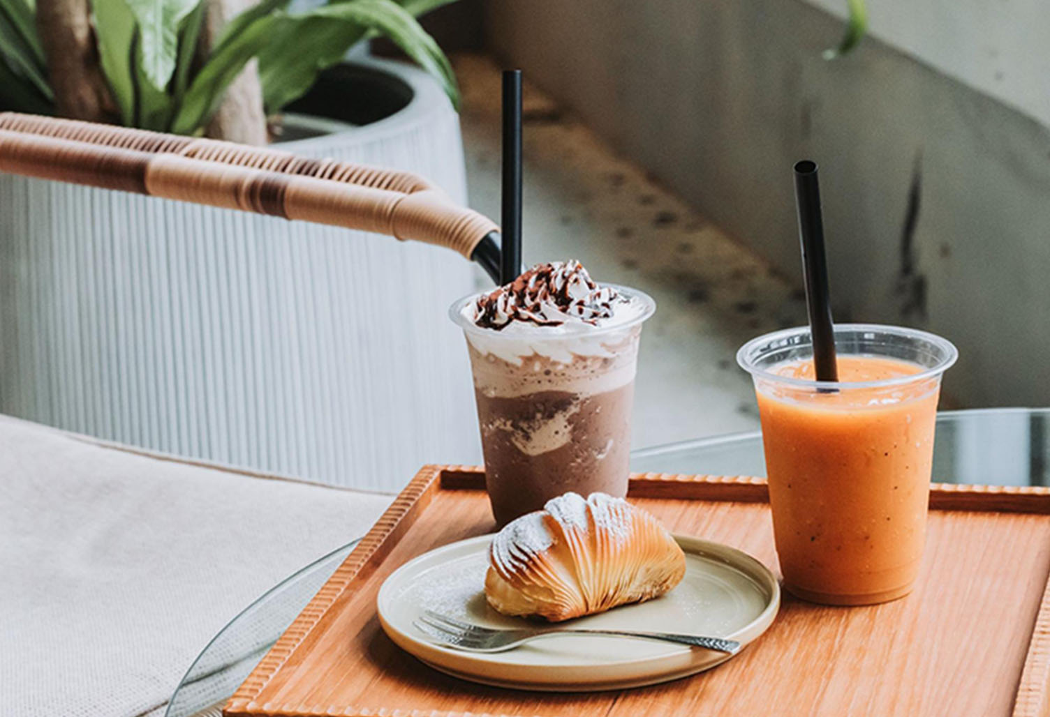 併設カフェでは丁寧に淹れたエスプレッソや、八丈島で採れたフルーツを使ったドリンクをいただけます。今回は、「モカチップコーヒー」と八丈島のパッションフルーツが入った「マンゴーパッションティー」を注文。