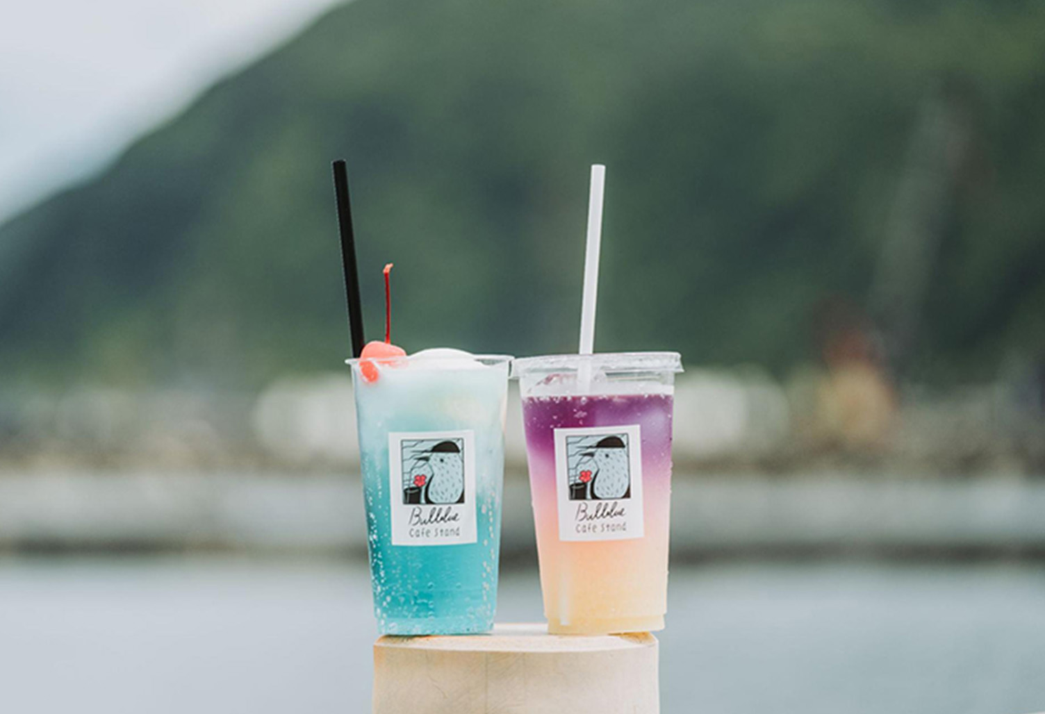 続いては、キッチンカー『Bulblue cafe stand(ブルブルーカフェスタンド)』を営む大金恭平さん・あやさん夫妻の元へ。八丈島の海や山が織りなす自然のBGMを聴きながら、広い青空の下で、島の素材を活かしたオリジナルドリンクや軽食を楽しむことができます。