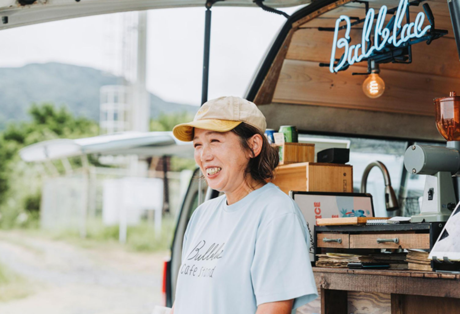 山口県出身。2020年に八丈島に移住し、翌年『Bulblue cafe stand』を夫婦でオープン。地域のイベントや学校にも出店するなど、人と人をつなぐ活動を積極的に行っている。フェアトレード商品を使ったり、環境保全に取り組んだりとサステナブルな店舗経営にも力を入れている。