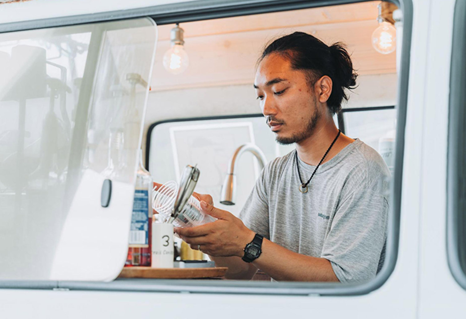 青空の下で島の恵みを届けるキッチンカー「Bulblue cafe stand」