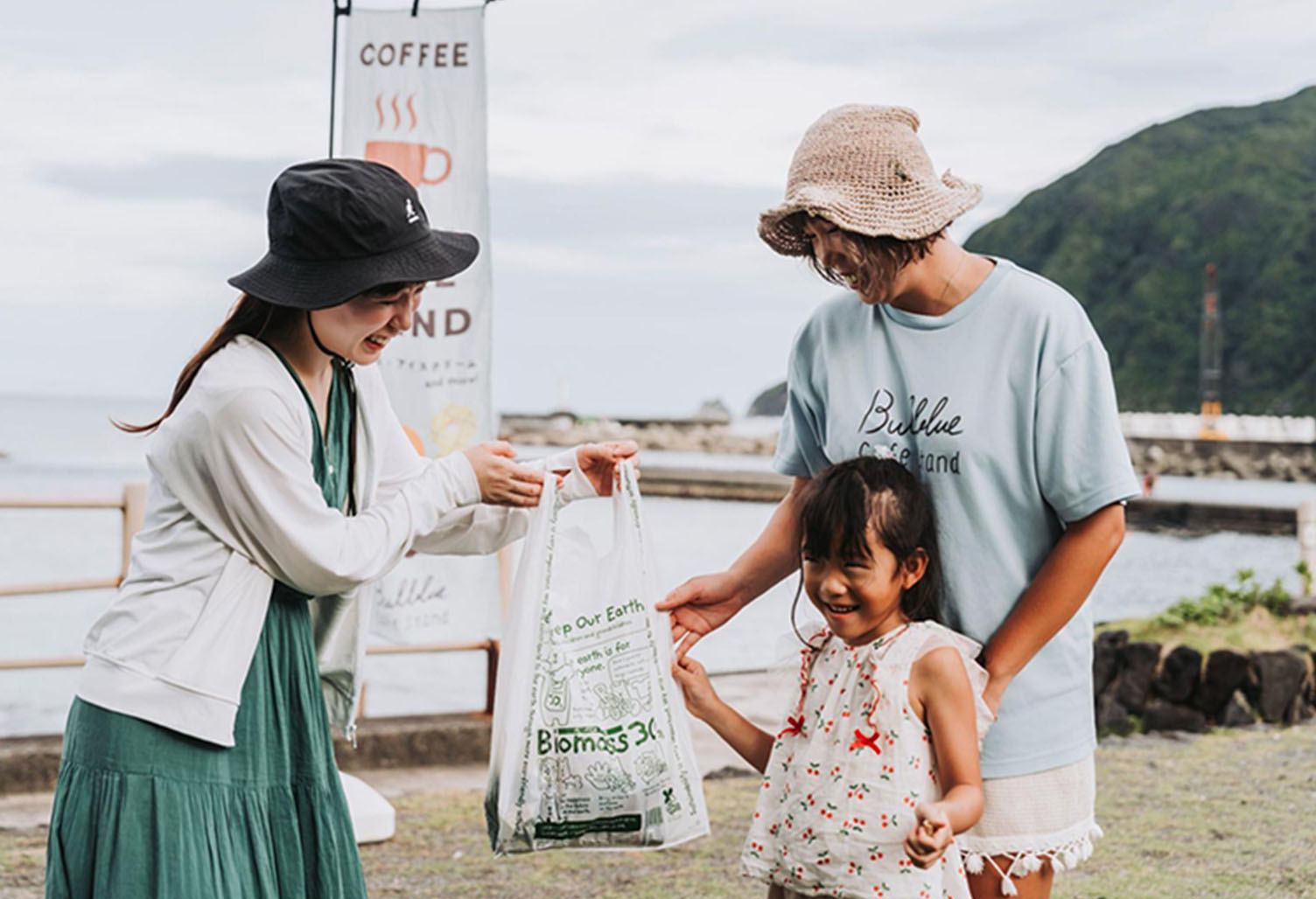また、八丈島の美しい海を守る取り組みとして、「ワンハンドクリーン活動」にも力を入れていて。店舗でお声がけいただくと、ゴミ袋と一緒にドリンクの割引チケットをお渡しし、お客さまのお好きなタイミングでビーチのゴミ拾いをしていただいています。