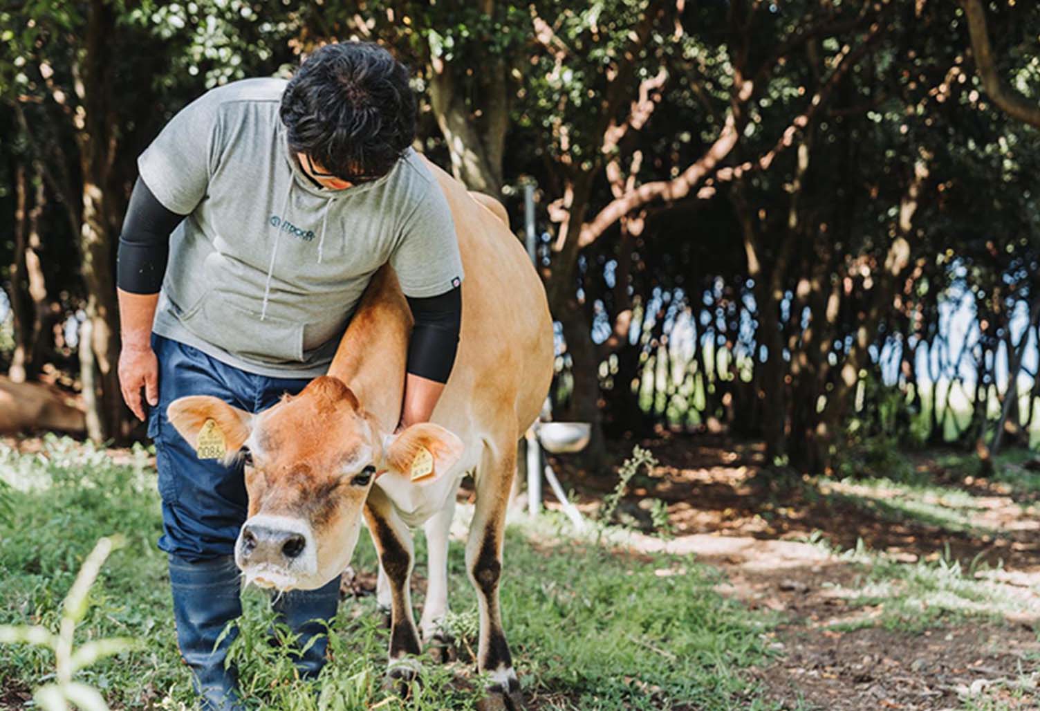 旅の締めくくりには、太平洋を望む広大な高台に広がる『ゆーゆー牧場』へ。自然豊かな環境で放牧されているジャージー牛は、飼料や乾草のほか八丈島の伝統的な飼料であるマグサ(八丈ススキ)・明日葉・カヤなどの島の草を食べて、のびのびと育ちます。